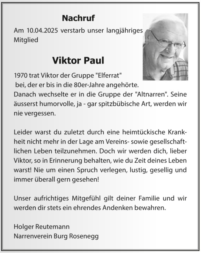 Wir danken ihm für seine Treue und wünschen ihm für das kommende Lebensjahrzehnt Gesundheit, Freude und viele weitere unvergessliche Momente bei der Rattlinger Fasnet