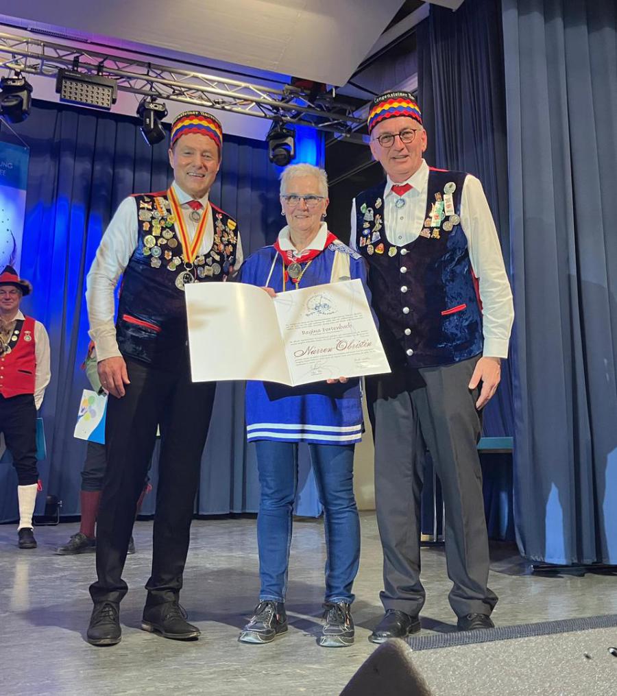 Vom Narrenverein Burg Rosenegg bekam dieses Jahr Regina Fortenbach die Ehrung für ihre Verdienste für den Verein.Viele lange Jahre hatte sie die Finanzen des Vereins erst als dritte und bald als erste Kassiererin in ihrer Hand, strickte nebenher noch die Vereinskappen , bewirtete die Musiker am schmutzigen Dunschtig und war überall da zur Stelle , wo die Vorstandschaft sie brauchte. Bereits als einjähriges Kind war sie in der Rattengruppe, deren Leiterin sie im Erwachsenenalter dann auch wurde.