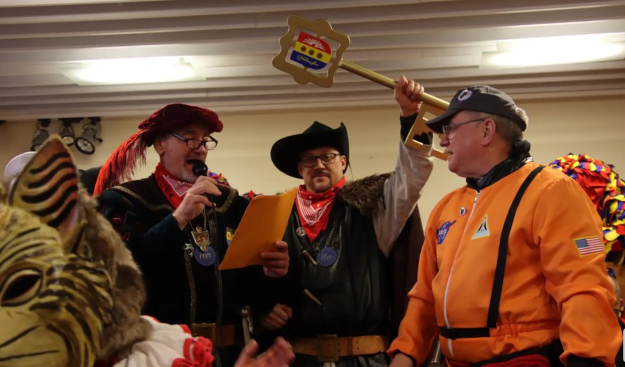 Jetzt regieren die Narren: Der Burgvogt hat dem Bürgermeister erfolgreich den Rathausschlüssel entrissen.Foto: Graziella Verchio